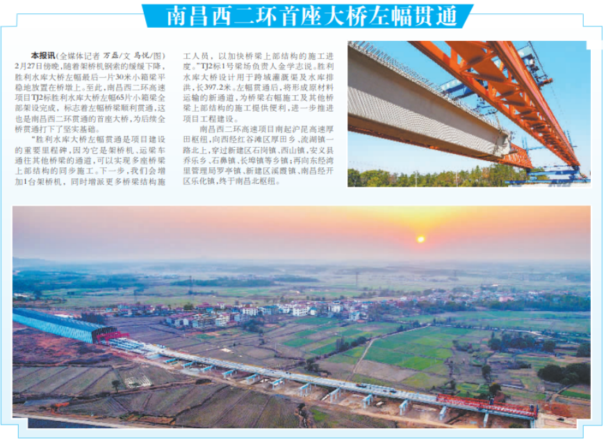 “成功水库大桥左幅贯通是项目建设的沉要里程碑,,,,,,由于它是架桥机、运梁车通往其他桥梁的通路,,,,,,能够实现多座桥梁上部结构的同步施工。。。。。下一步,,,,,,我们会增长1台架桥机,,,,,,同时增派更多桥梁结构施工人员,,,,,,以加快桥梁上部结构的施工进度。。。。。”TJ2标1号梁场掌管人金学志说。。。。。成功水库大桥设计用于跨域灌溉渠及水库排洪,,,,,,长397.2米。。。。。左幅贯通后,,,,,,将形成原资料运输的新通路,,,,,,为桥梁右幅施工及其他桥梁上部结构的施工提供方便,,,,,,进一步推动项目工程建设。。。。。