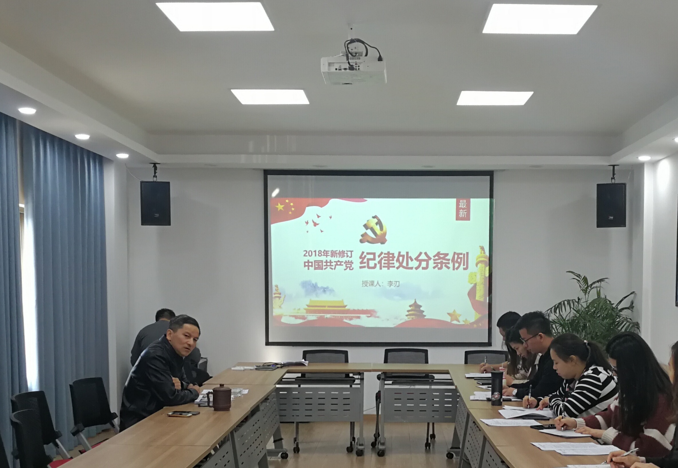 凭据上级文件要求及集团纪检工作会议心灵,,,,,,,,资阳城投运营治理有限公司党支部于11月30日下午在公司纪律讲堂召开《中国共产党纪律处罚条例》专题进建会,,,,,,,,公司纪检分管辅导李刃同道作为主讲人,,,,,,,,通过对纪律处罚条例造订的意思及要求、条例订正后的八大亮点、不忘初心服膺使命怎么当真遵循执杏注纪律处罚条例内容解读四个部门进行解说,,,,,,,,领导公司整个纪检监察干部、党员及入党积极分子当真进建把握《中国共产党纪律处罚条例》。。。。。